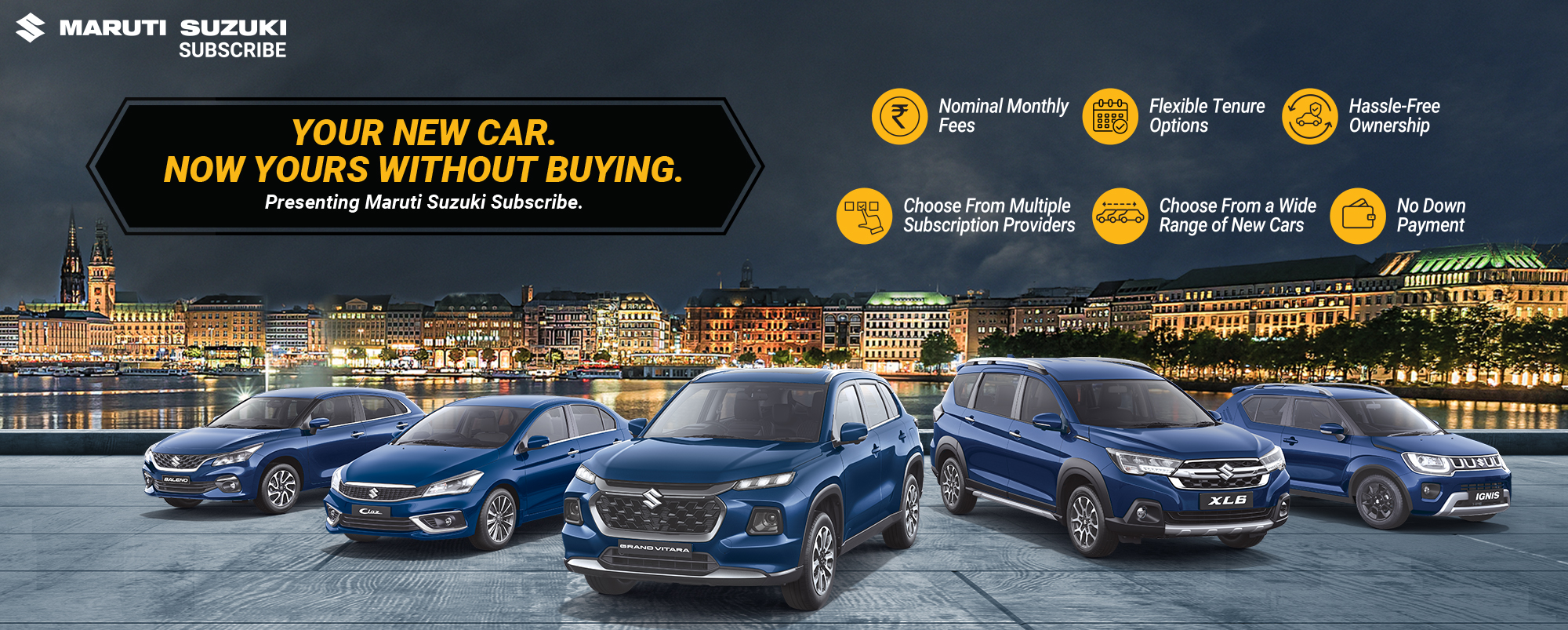 Maruti Suzuki Subscribe enables all customers to enjoy driving their preferred Maruti Suzuki cars without having to deal with all the financial responsibilities that come with owning a car.All you need to do is opt for a monthly subscription plan at a fixed monthly fee, which includes the routine maintenance and insurance costs, and choose a flexible tenure. At Shivam Autozone in, Shivam Autozone, Mumbai, all Hatchback, Sedan, SUV, the MUV models line-up includes Baleno, Invicto, EVitara, Jimny, Ciaz, Ignis, Fronx, Grand Vitara, XL6. Here, you will enjoy Maruti Suzuki Subscribe benefits such as:
